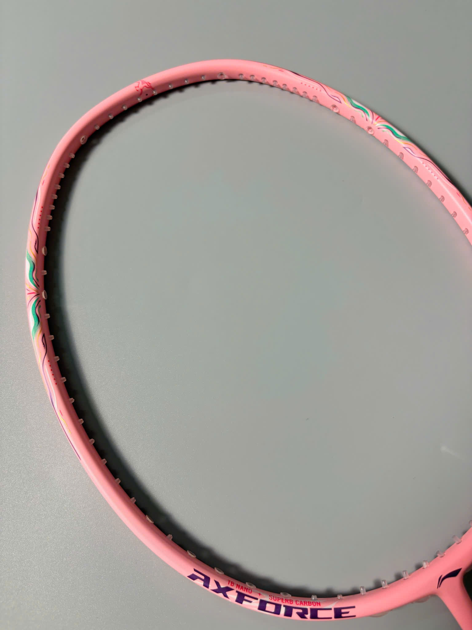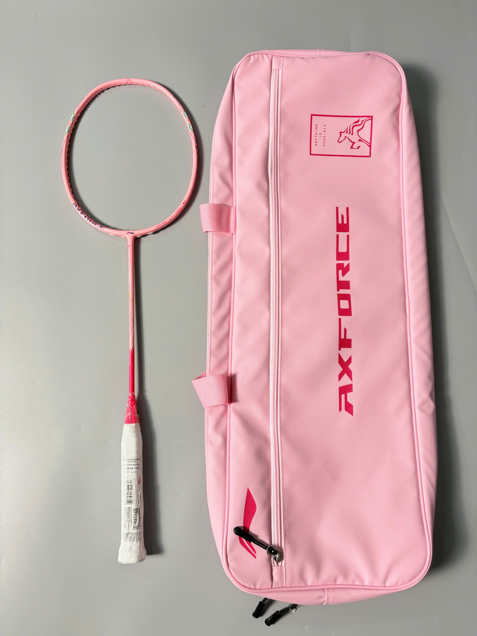 Điểm nhấn khó quên nhất chính là phối màu Hồng Pastel chủ đạo, chuyển dần sang các tông đỏ và tím nhẹ nhàng ở phần khớp chữ T và khung vợt. Đi kèm là chiếc bao vợt Axforce màu hồng đồng bộ cực kỳ sang chảnh. Đây là một bước đi táo bạo của Lining, biến cây vợt thành một tác phẩm nghệ thuật thực thụ, mang lại cảm giác tươi mới, tràn đầy năng lượng cho những trận cầu khai xuân.